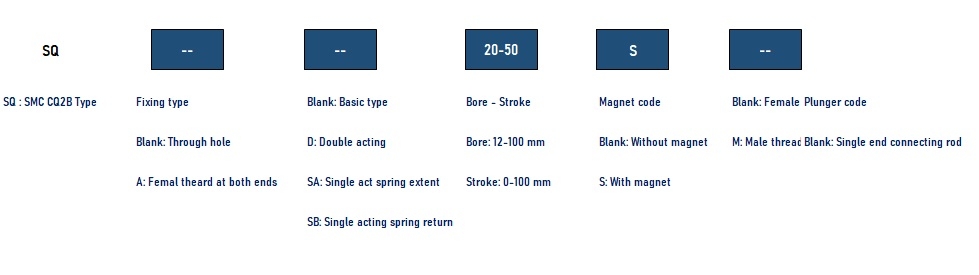 กระบอกลมคอมแพค SQ ของ SEMAX หรือที่เรียกกันว่ากระบอก CQ2B CDQ2B มีขนาดเล็ก และน้ำหนักเบา ติดตั้งง่าย เหมาะสำหรับงานที่จำกัดพื้นที่ และสะดวกในการดัดแปลงรูปแบบการใช้งานในโรงงานอุตสาหกรรม ที่สำคัญคือสามารถนำไปติดตั้งให้ทำงานเดี่ยวๆ โดยไม่ต้องติดตั้งพวกอุปกรณ์เสริมใดๆเพิ่มเติม มีขนาดของแกนลูกสูบให้เลือกตั้งแต่ 12 มิลไปจนถึง 100 มิล มีให้เลือกใช้ทั้งชนิดมีแม่เหล็ก และไม่มีแม่เหล็ก