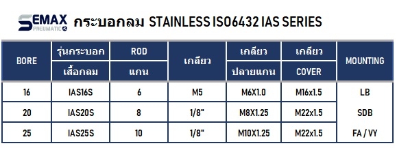 กระบอกกลมมาตราฐานขนาดเล็ก ISO6432 รุ่น IAS หรือ MA6432
